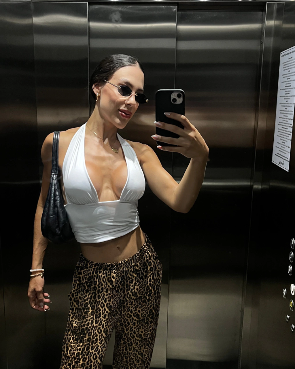 A modelagem é ajustada ao corpo e o tecido estica bastante!
