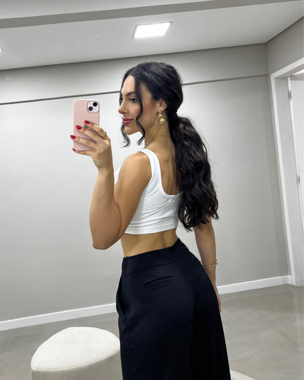 Blusa cropped com frente em tecido duplo para usar sem sutiã e não marcar os seios, viu?!