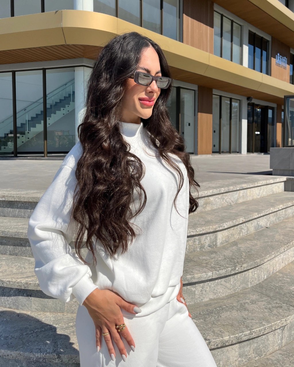 Tecido quentinho e encorpado, com alta gramatura e peluciado por dentro.