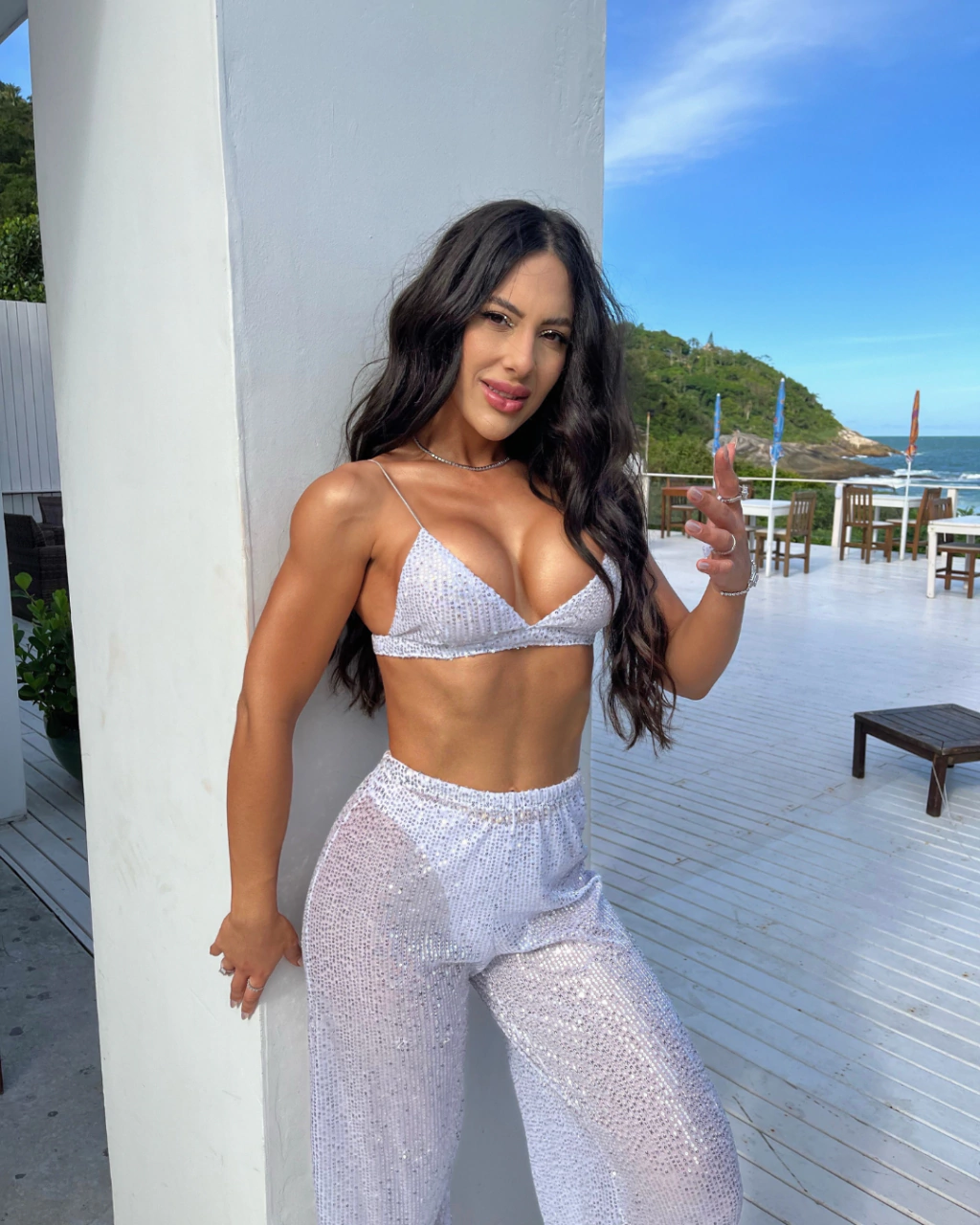 Material: paetê bordado com elastano. Estica bem, é flúido e delicado!