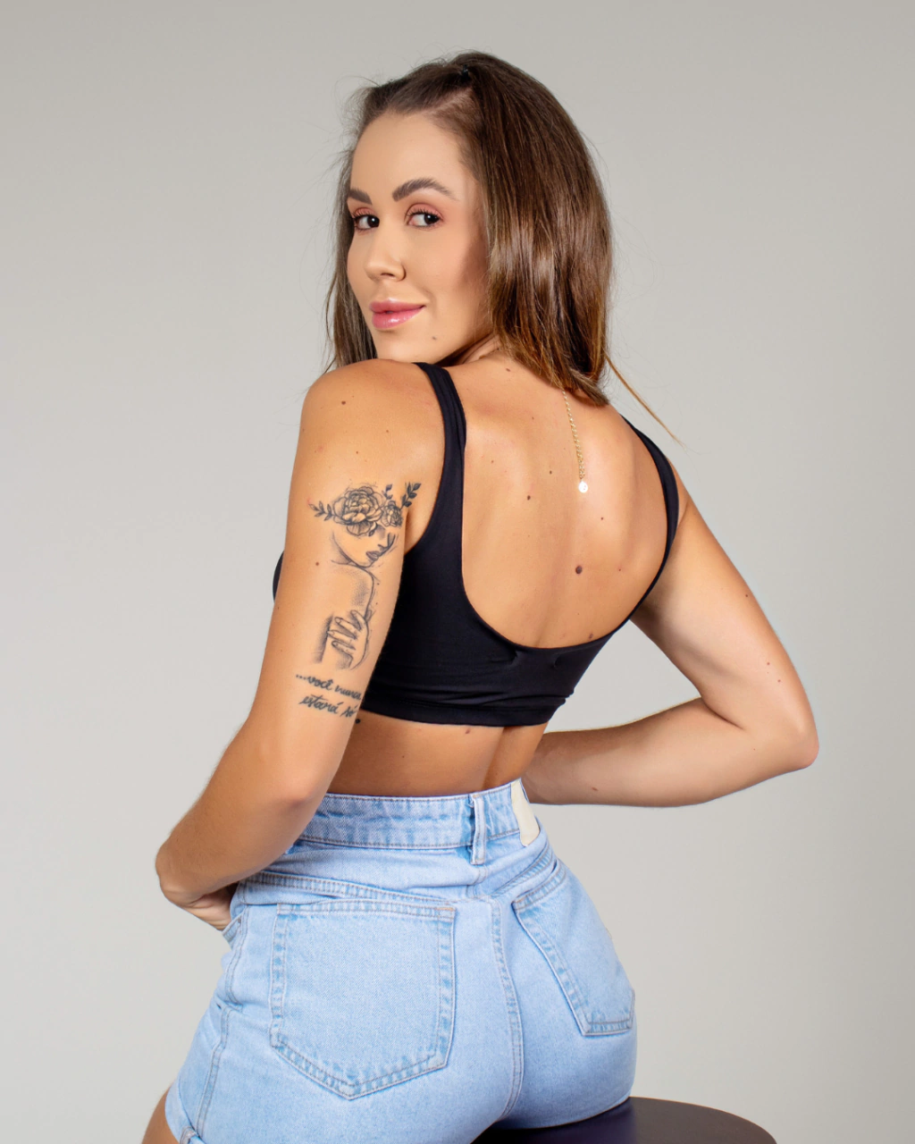 Top com decote reto e alças grossas, desenvolvido para sustentar e valorizar os seios!