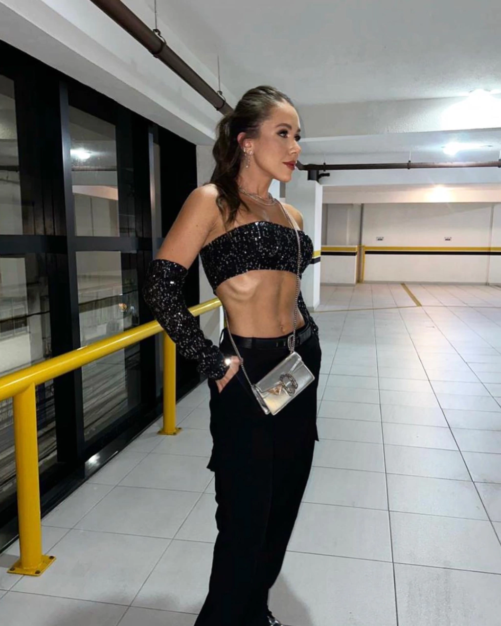 Top reto com nosso paetê PHANTASY, uma mistura de brilho preto com prata SURREAL!